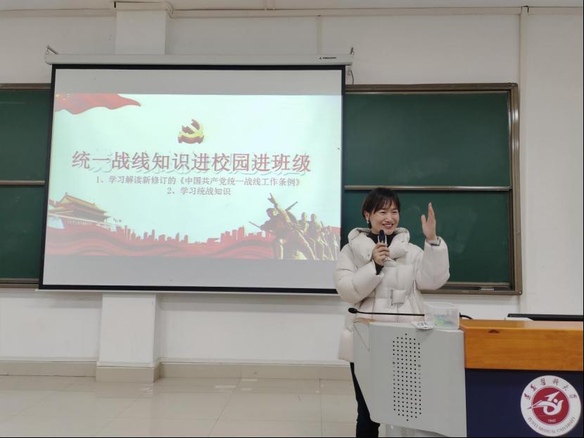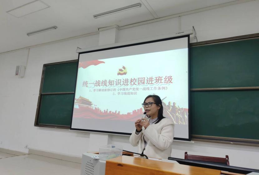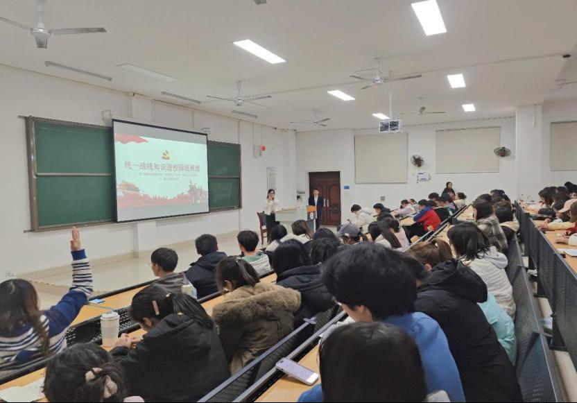 胡艳华、陈圆圆两位老师对统战工作知识进行现场知识问答,与同学们进行了互动。