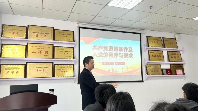 黎飞首先围绕如何申请入党,入党的基本情况,以及入党的主要步骤展开了讲解,让对入党充满激情的23级新生有了一定的了解,黎飞说到“中国共产党已走过百年奋斗历程。我们党立志于中华民族千秋伟业,致力于人类和平与发展崇高事业,责任无比重大,使命无上光荣。全党同志务必不忘初心、牢记使命,务必谦虚谨慎、艰苦奋斗,务必敢于斗争、善于斗争,坚定历史自信,增强历史主动,谱写新时代中国特色社会主义更加绚丽的华章。”让同学们懂得了入党不是儿戏,它是需要强大的意志力和责任心,需要的是坚守,团结!