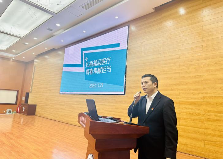 为了让在校全科学子深刻了解在校学习的意义,知晓毕业后在工作上面临的各类问题,制定实用的生涯规划,11月21日,公司邀请优秀员工杨作章为公司全体员工做了以“扎根基层医疗,青春奉献担当”为主题的讲座。全科医公司党总支书记黎飞、院关工委副主任滕久军、辅导员胡艳华、陈圆圆老师及新浦校区全体在校员工参加了本次讲座。