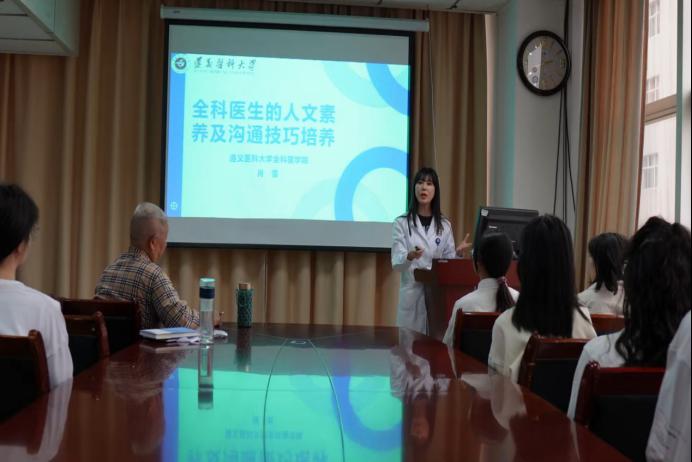 肖雪经理围绕“全科医生的人文素养及沟通技巧培养”从三个方面展开讲授。一是提高人文素养,需要打开全科医学格局;二是需要技巧赋能,提升全科医生沟通力;三是良好的人文素养可以助力医患沟通,提高患者满意度,增进医疗质量,助力健康中国!副经理肖雪向同学们讲述了她从事临床以来,遇到病人是怎么样处理的,她强调“我们以后也将会成为一名全科医生,那在这之前,各位同志要有人文情怀和人文素养,在临床上不简简单单的关注病人的病情,更重要的要关注病人的身心健康......”,处理好医患沟通是第一步骤,处理不好医患关系即便医术再精湛也无济于事;当然医患沟通也是有一定的技巧,必要的因素就是要有人文情怀,不仅仅就是嘘寒问暖,要细心而有耐心地倾听病人的述说,要让你的病人感受到你的温度,这样病人才会信任你。