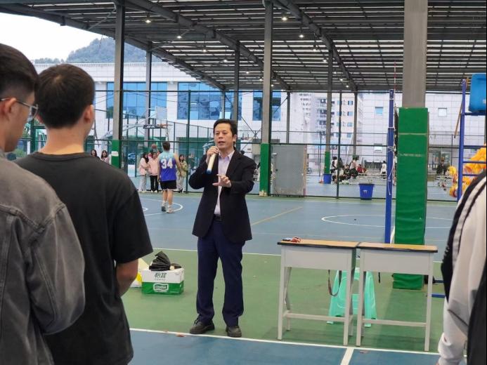 比赛在黎飞书记的致辞中拉开了帷幕,希望同学们在比赛过程中始终坚守“友谊第一,比赛第二”的理念,锻炼出坚韧不拔的意志和强健的体魄。在比赛开始之前,2023级同学也为我们带来了精彩的啦啦队体操,为我们的运动健儿们加油!在比赛过程中,参赛选手们身姿矫健,配合默契,不断调整战术,全力配合,快攻猛打,现场十分激烈,观众们激情澎湃、斗志昂扬,为我们的选手们大声呐喊加油!