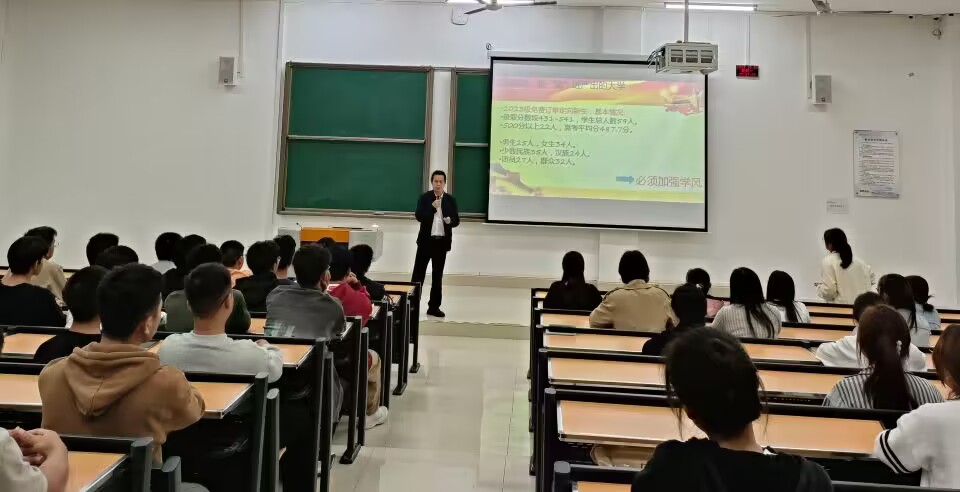 10月9日18时,全科医公司党总支书记黎飞在新蒲校区第四教学楼第35阶梯教室给2023级新生上思政课。本次思政课主题为“初心不改:以萤火之光护佑民众健康”。年级老师陈圆圆及2023级全体成员参会。