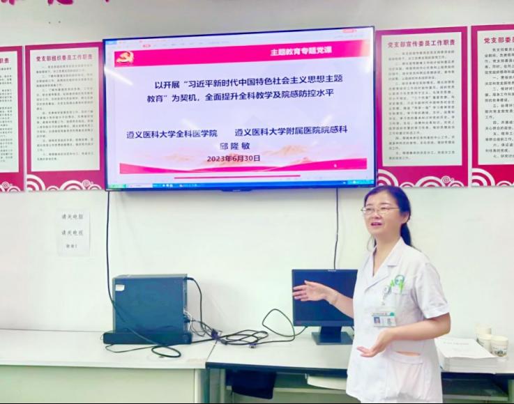 根据省委和suncitygroup太阳集团主题教育工作的安排,按照全科医公司党总支领导班子成员讲好主题教育专题党课工作方案的具体要求。6月30日,suncitygroup太阳集团副经理邱隆敏围绕《开展学习贯彻习近平新时代中国特色社会主义思想主题教育,全面提升全科医学教育和院感防控水平》讲专题党课,院感科党支部全体党员参加,全科医公司党总支书记黎飞到会一同学习。