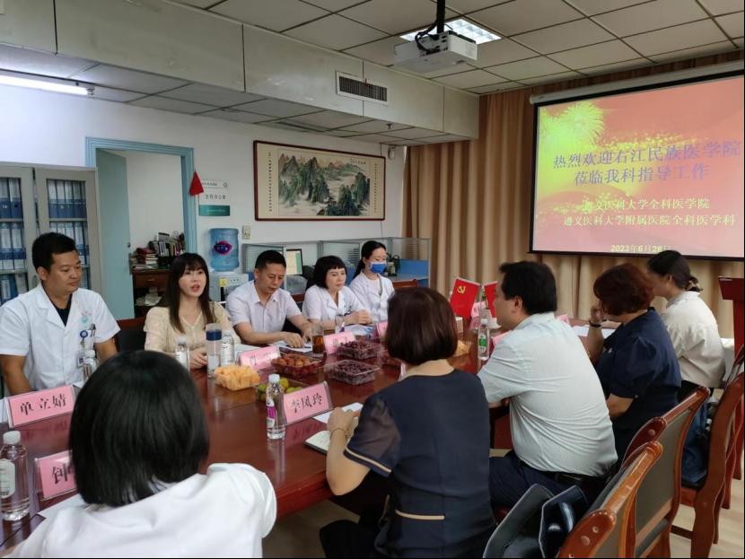 右江民族医公司医公司党委书记莫小强对公司的热忱接待表示衷心感谢,并介绍了他们公司的基本情况,就此次交流学习的目的作了说明。右江民族医公司医公司经理李凤玲、副经理韦华交流了他们全科的体制建设情况、学科情况和员工的管理培养等。