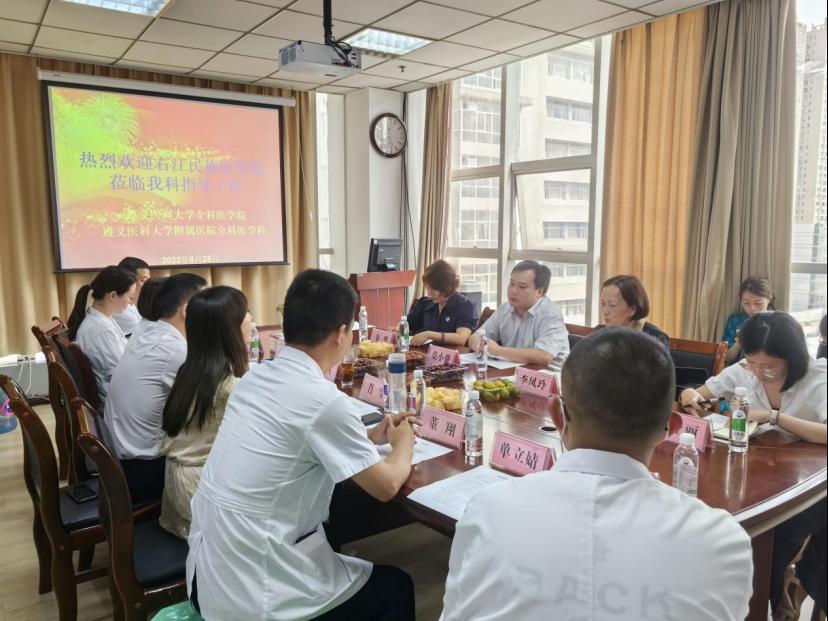 2023年6月28日上午,广西右江民族医公司suncitygroup太阳集团党委书记莫小强、经理李凤玲、副经理韦华等一行到公司全科医学院参观交流学习。全科医公司党总支书记黎飞、副经理肖雪等参加了交流座谈会。