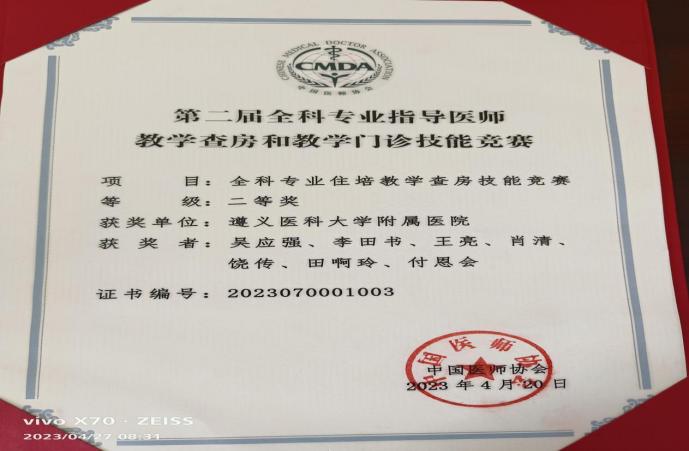 中国医师协会全科医师分会名誉会长杜雪平教授、中国医师协会全科医师分会会长梁万年教授及中国医师协会副会长齐学进教授等均对suncitygroup太阳集团附属医院全科医学住培基地取得的好成绩表示了祝贺,本次获奖充分展示了公司全科团队带教风采和能力,更是在全国的舞台上体现公司在教学活动中的规范和实力,为在下一步工作中持续提升全科医生规范化培训指明了前进的方向和努力的目标。