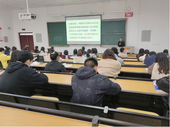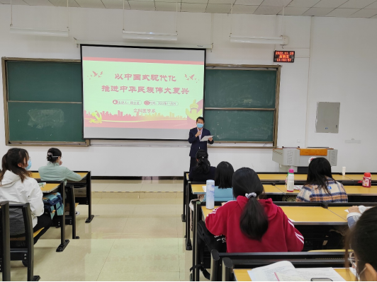 顾士龙老师从牢牢把握中国式现代化的本质要求、深刻把握中国式现代化的中国特色、以习近平新时代中国特色社会主义思想的世界观和方法论全面推进中华民族伟大复兴三个方面为同学们讲述党的二十大核心内容。要深刻领悟“两个确立”的决定性意义,增强“四个意识”、坚定“四个自信”、做到“两个维护”,不断提高政治判断力、政治领悟力、政治执行力,始终同以习近平同志为核心的党中央保持高度一致,更加坚定自觉地用习近平新时代中国特色社会主义思想武装头脑。顾老师强调中国式现代化坚持以人民为中心的发展思想,全体人民共同富裕、物质文明和精神文明相协调、人与自然和谐共生等基本特征,发展全过程人民民主、丰富人民精神世界等本质要求,体现了坚持人民至上的世界观和方法论。最后黎书记总结到实现中华民族伟大复兴是一项复杂的工程,更需要世界观和方法论的指导,坚持人民至上、坚持自信自立、坚持守正创新、坚持问题导向、坚持系统观念、坚持胸怀天下的世界观和方法论,对于全面推进中华民族伟大复兴具有重要指导意义。同学们要加倍努力学习,在未来有所作为。