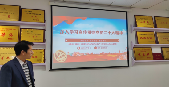 11月16日下午14:00,全科医学系党总支书记黎飞在全科医学系会议室专题宣讲党的二十大精神,深入学习宣传贯彻党的二十大精神。全科医学系副主任肖雪、邱隆敏、正处级组织员邵珠建、辅导员胡艳华、陈圆圆、公司关工委老师(系关工委副主任)滕久军参加了专题宣讲会。