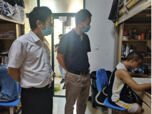 9月19日上午8:30分,公司党委副书记蔡善君与系党总支书记黎飞在员工宿舍查看员工网课学习情况