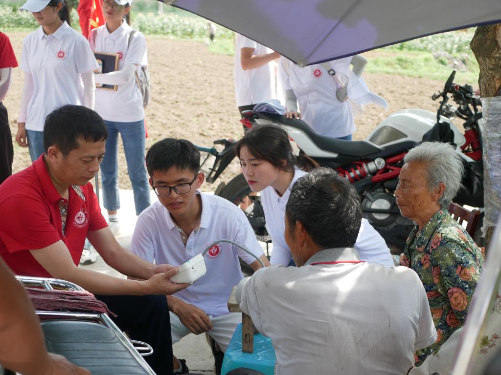 7月14日,实践队在全科医学系党总支书记黎飞、全科医学系团委负责人陈圆圆的带领下走访留守老人。走访过程中,为老人们测量血压,普及安全教育知识,送去急救医疗包,弘扬了爱老敬老新风。