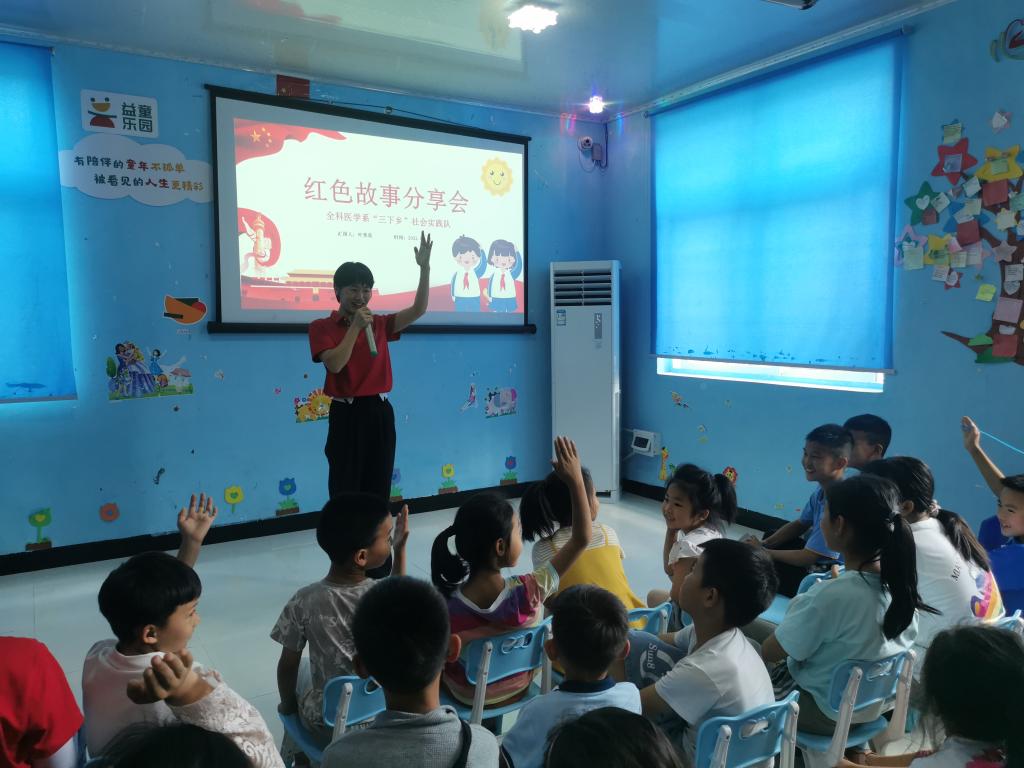 7月12日,实践队走进遵义绥阳县郑场镇卧龙村儿童益智乐园,以“讲好红色故事”为主题,将红色文化、红色传统和红色记忆植入孩子们的心中,增强小朋友们“有国才有家,爱我国家”的爱国情怀。