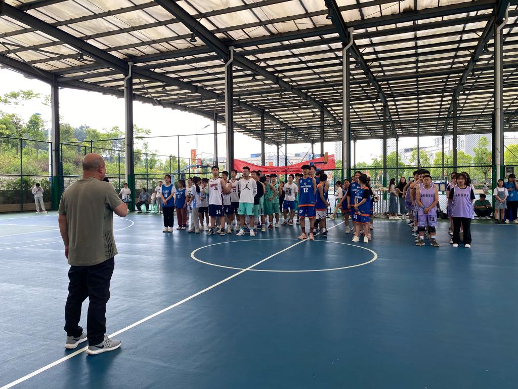 为了增进友谊,加强同学之间相互交流和联系,丰富校园文化生活,展现遵医学子奋发拼搏、勇于开拓的精神风貌, 2022年5月8日15:00,我系在风雨篮球场与基础医公司、第一临床医公司举行了2022年篮球友谊赛。各院系辅导员、参赛队员、啦啦队230人左右参加了开幕式,基础医公司党委正处级组织员阳江鸿老师出席开幕式并讲话,全科医学系党总支书记黎飞宣布球赛正式开始。