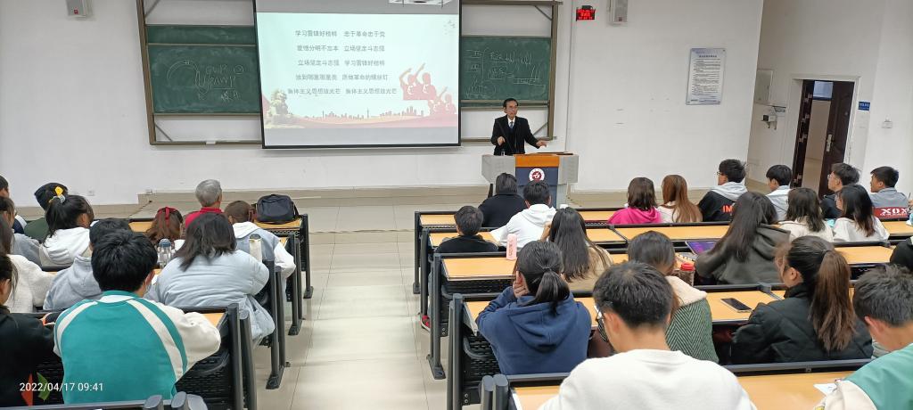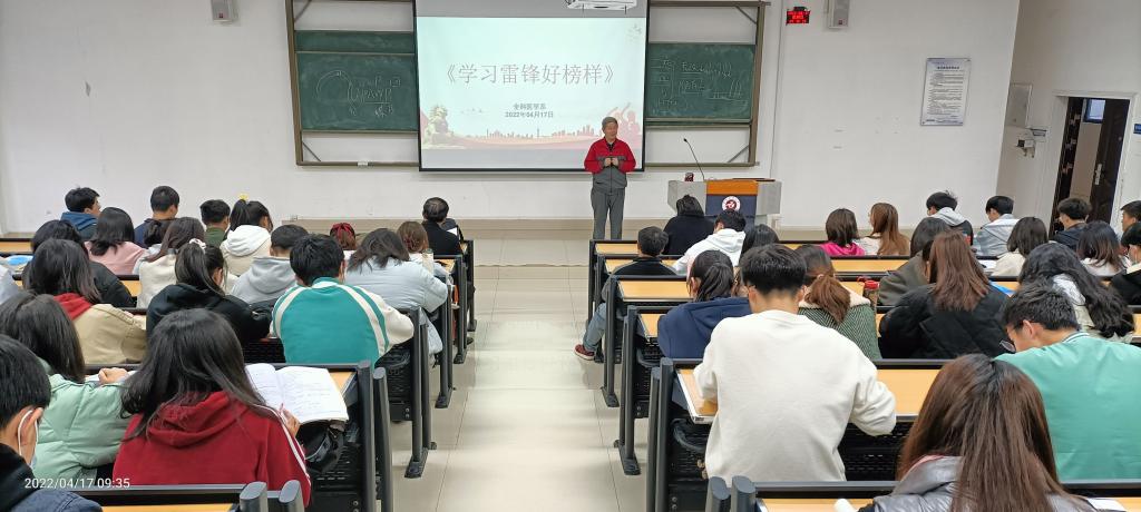 为持续推动党史学习教育常态化长效化,全面贯彻落实《新时代爱国主义教育实施纲要》,切实加强老员工革命传统教育和爱国主义教育。全科医学系关工委组织员工开展唱红歌活动,于2022年4月17日邀请了离退休老同志刘天成在三教18阶教室教员工学唱红色歌曲《学习雷峰好榜样》。本次活动由全科医学系关工委副主任滕久军主持。全科医学系2020级、2021级辅导员及全体员工参与。