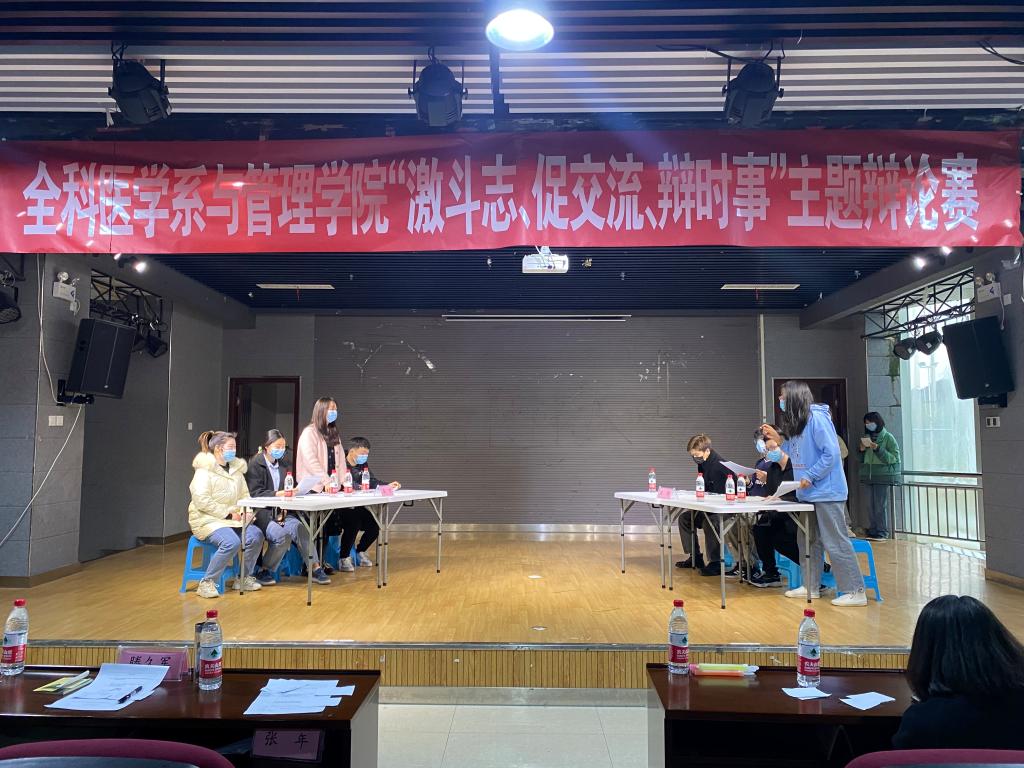 为促进同学们的交流,引导同学们树立正确的消费观、荣辱观和价值观。由全科医学系关工委工作小组举办的以“激斗志·促交流·辩时事”为主题的辩论赛初赛于4月1日在员工事务中心师生活动室开展。此次比赛的评委有全科医学系关工委副主任滕久军、系团委负责人陈圆圆、系员工第二年党支部副书记胡艳华、系学会第一党支部负责人徐廷宇、2019级1班班主任群利、2019级2班班主任王苗、2021级1、2班班主任张年。全科医学系2019级、2020级、2021级员工观赛。