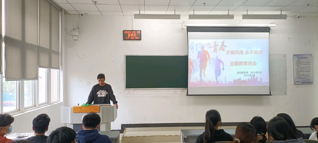 本次主题班会中,2017级员工们为配合疫情防控,以线上微视频的学习方式进行学习,会中介绍了多位国家运动员的真人事迹,希望同学们能从中学习到更多艰苦坚持的精神;2019级、2020级及2021级员工以线下学习的方式进行学习。2019级员工提出热爱是一切坚持的动力,并希望同学们以运动健儿们为榜样,做到热爱医学,努力学习,精益求精;2020级员工提出,同学们要在失败中成长,人生不可能一帆风顺,要学习运动员们艰苦卓绝,在失败中总结经验,努力学习知识,丰富自己的学识;2021级员工以运动员们的事迹提出同学们要正确面对挫折,解决困难,并希望同学们明白意志力的重要性,希望同学们任何时候都不要轻言放弃,努力奋斗。