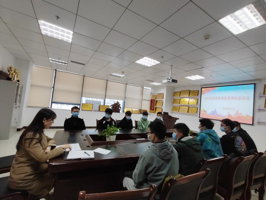 “关爱学习困难员工,关注员工整体发展”是全科医学系学风建设的重要立足点,为了能让学习困难的同学在学业上有所进步,在态度上有所端正,全科医学系于2022年3月22日16:30在全科医学系会议室召开了联系“学困生”座谈会。系党总支书记黎飞、系副主任肖雪参加本次座谈会。
