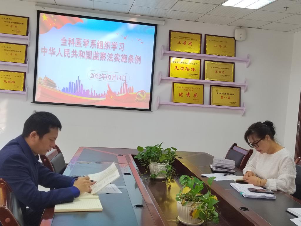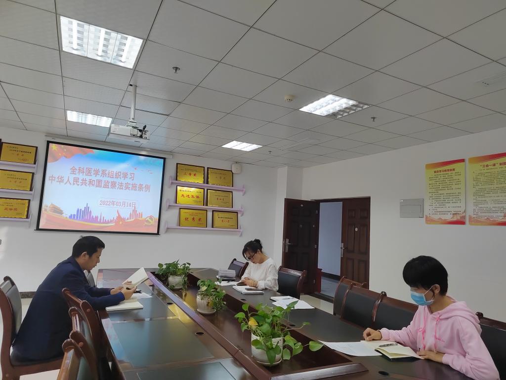 2022年03月14日上午,全科医学系开展纪检专题知识学习,此次学习会议由系党总支书记黎飞主持,辅导员胡艳华、陈圆圆、徐廷宇参会。