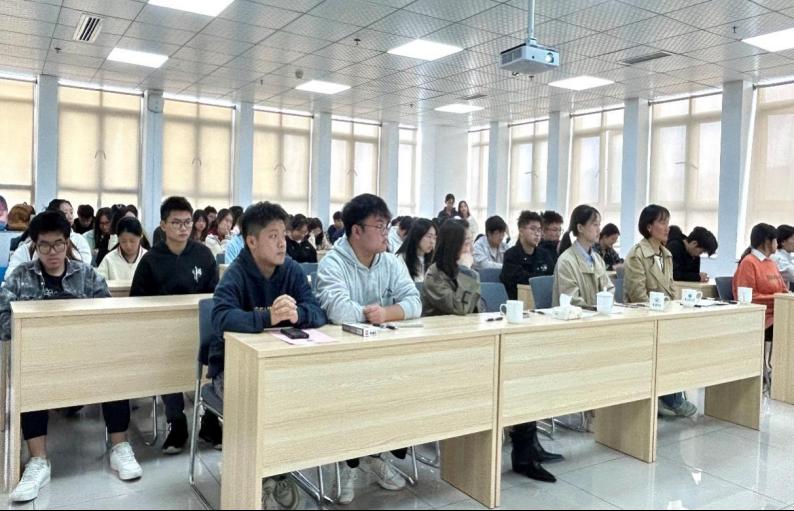 10月30日上午,公司副经理邱隆敏在综合实验楼614给全科学子上思政课。公司办公室副主任李庆钰、员工第一党支部负责人杨晓艳、员工第二党支部副书记陈圆圆、2023级全体员工参与本次思政课。