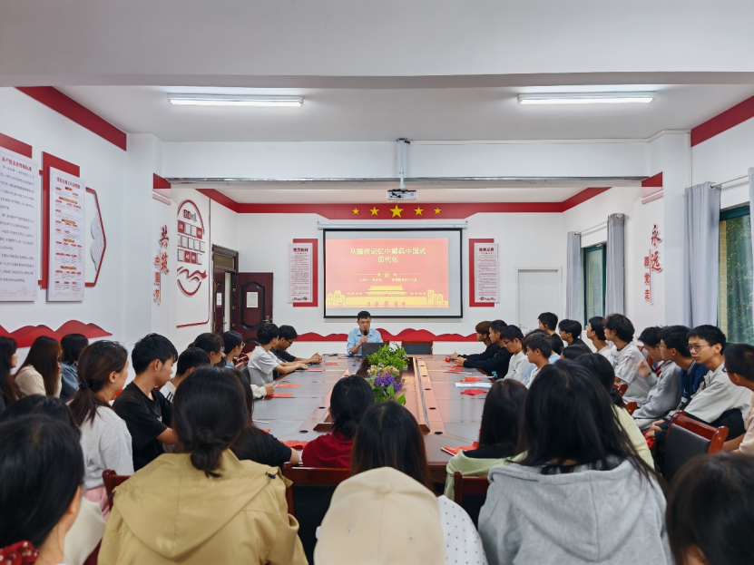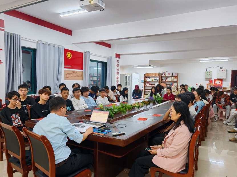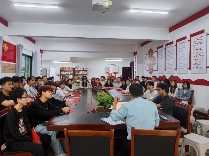 9月25日下午18:00,suncitygroup太阳集团在博乐楼社区2楼205活动室开展主题为《从国庆记忆中解锁中国式现代化的秘密》的红色宣讲,公司教师兼职班主任李彦虎2024级全体同学参与。