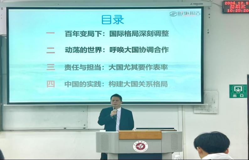 此次授课让同学们明白了作为新时代的青年,应了解大国关系格局的演变、现状和未来趋势,增强民族责任感以及明确个人在时代浪潮中的使命具有重要意义。(一审:陈圆圆 二审:李庆钰 三审:黎飞 撰稿:廖庆馨 摄影:朱佳毅)