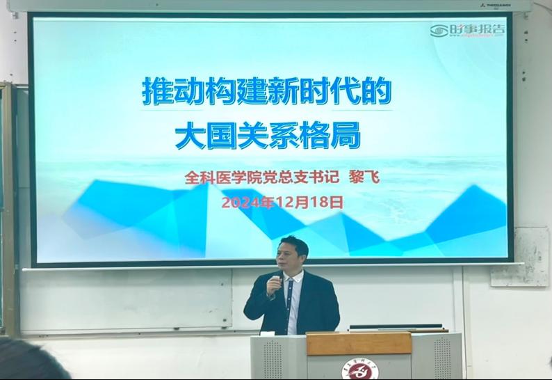 “当今世界正处于百年未有之大变局,国际形势复杂多变,推动构建新时代大国关系格局成为全球和平稳定与发展的关键所在。”12月18日10:30,全科医公司党总支书记黎飞在新蒲校区第二教学楼第一阶梯教室给员工上思政课。
