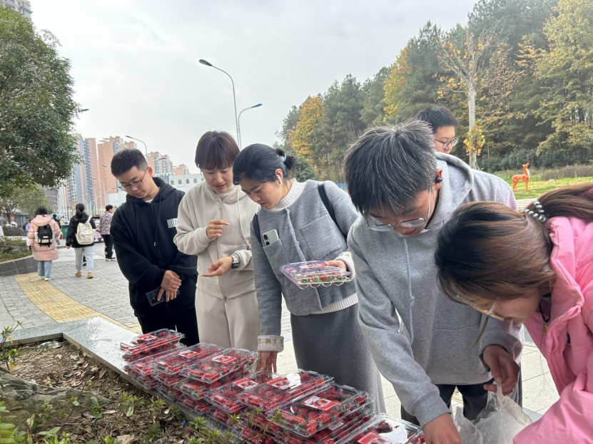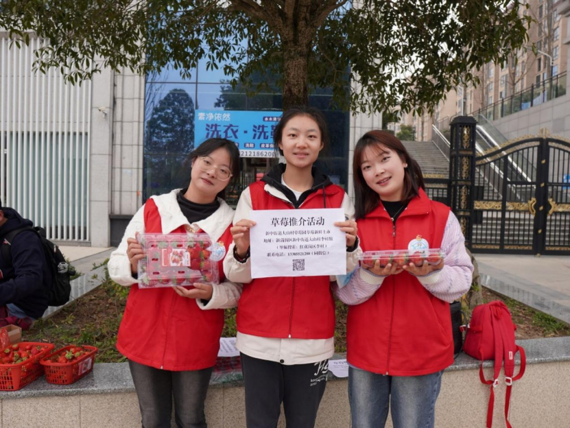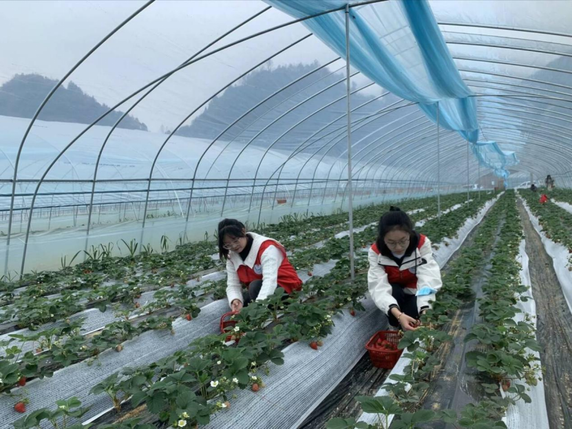 近年来,遵义市新蒲新区大山村采用“党支部+合作社+农户”的组织方式,发展草莓种植,带动群众就近务工,促农增收,带动115户村民增收,让村民在家门口实现就业,助力乡村振兴。实践队员走进草莓种植基地,协助大山村草莓园采摘草莓并参与售卖4次,协助推广草莓基地并售卖草莓金额达2000余元,以实际行动助推社区集体经济发展。
