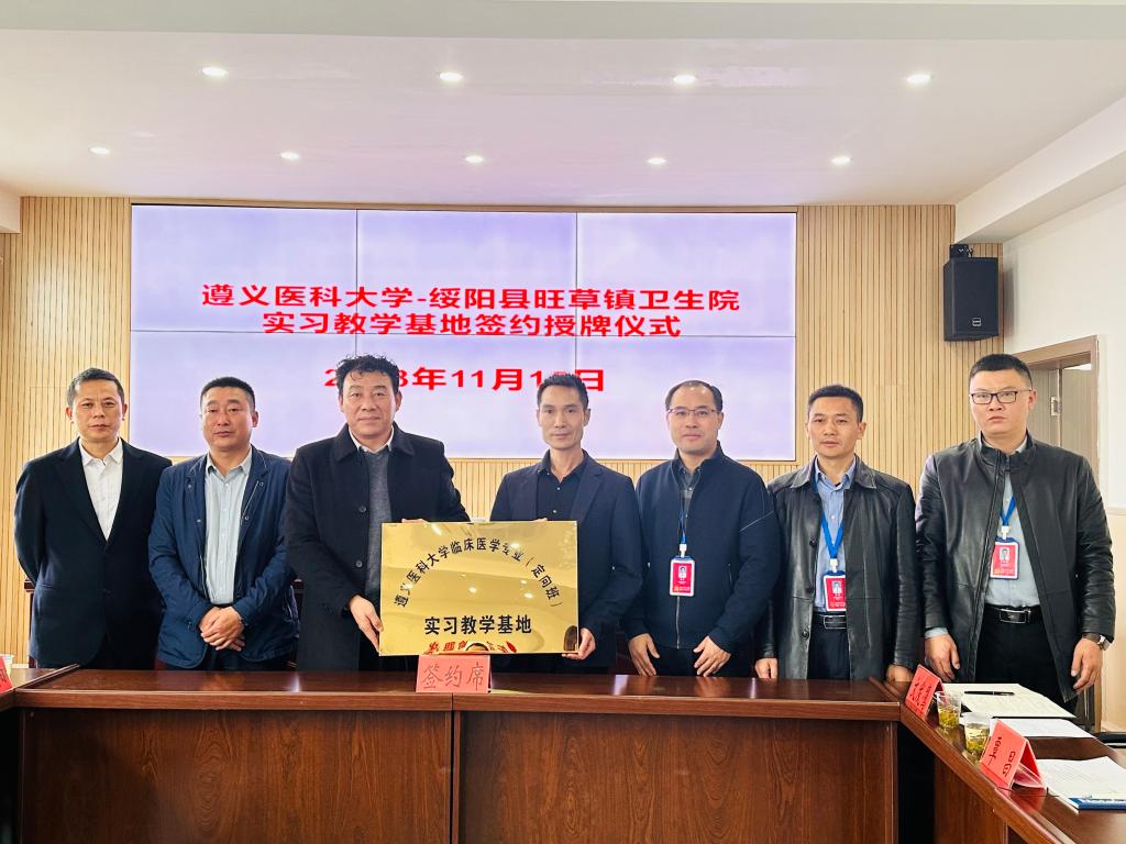 为加快高等教育改革步伐,促进院校交流与合作,进一步推进医教协同,深化医学人才培养改革,本着“互相促进、共同提高”的原则,2023年11月15日,suncitygroup太阳集团与绥阳县旺草镇卫生院正式签订临床教学实习基地协议并授牌。本次签约授牌仪式由绥阳县中医医院(紧密型医共体总院)覃昌副经理主持,suncitygroup太阳集团教务处副处长张继东、公司全科医公司党总支书记黎飞、绥阳县卫生健康局局长敖刚、旺草镇卫生院经理杨康、绥阳县中医医院(紧密型医共体总院)副经理覃昌及相关领导老师出席仪式。