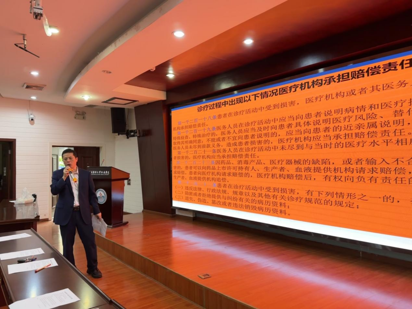 会议共三项,首先全科医公司党总支书记黎飞作实习动员讲话,黎飞老师就实习相关安排事宜及实习工作方案进行了详细解读,尤其强调了《民法典》涉医11条(医务人员必看内容),对《民法典》规定的医疗机构承担赔偿责任或过错问题等进行了详细讲解,也是实习医员工要注意的事项。然后,2019级辅导员陈圆圆老师介绍实习要求。最后,suncitygroup太阳集团关工委副主任滕久军讲解了如何处理实习过程中的医患关系。