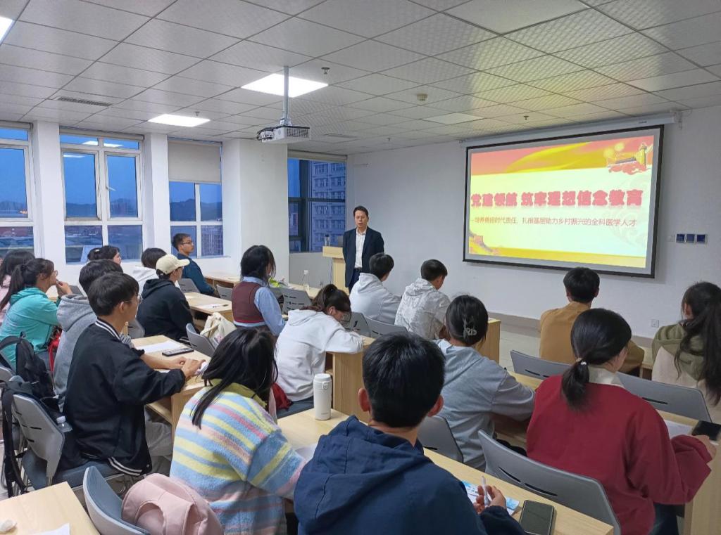 此次培训以“党建领航筑牢理想信念教育——培养勇担时代责任、扎根基层助力乡村振兴的全科医学人才”为主题。黎飞书记围绕筑牢理想信念为主要内容,结合党章和党史进行专题授课,把党的理论教育、党章党规党纪教育与打造基层全科医学人才教育相结合,在悟思想中坚定理想信念,在努力学习中坚定使命担当。