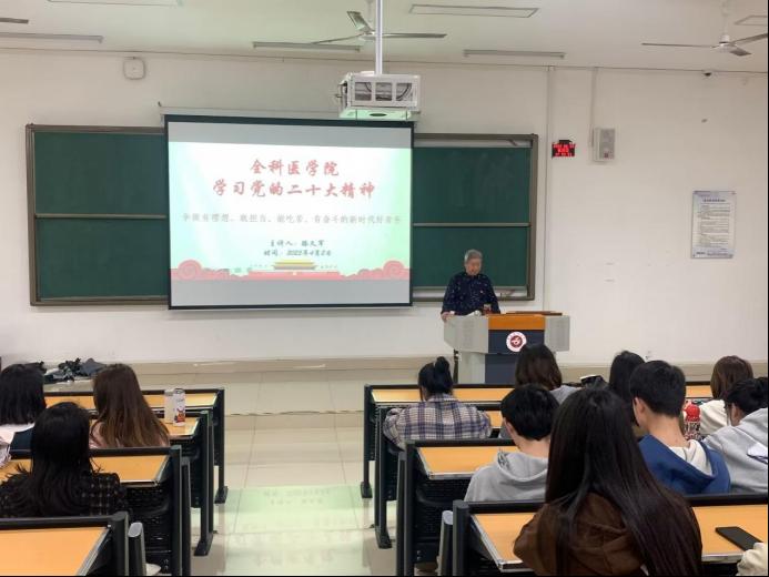 党的二十大是一次承前启后、继往开来的大会,同学们认真学习党的二十大精神,弘扬伟大建党精神,坚定不移听党话、跟党走,怀抱梦想又脚踏实地,敢想敢为又善作善成,立志做有理想、敢担当、能吃苦、肯奋斗的新时代好青年。
