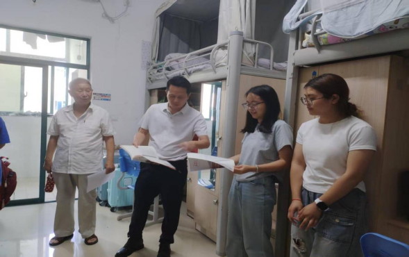 在走访过程中,与各位新生亲切交谈,详细询问了大家的入住情况、适应状态以及生活需求,耐心解答新生关于学业规划、校园生活等方面的疑问,叮嘱大家尽快调整状态,互帮互助,营造和谐的寝室氛围。