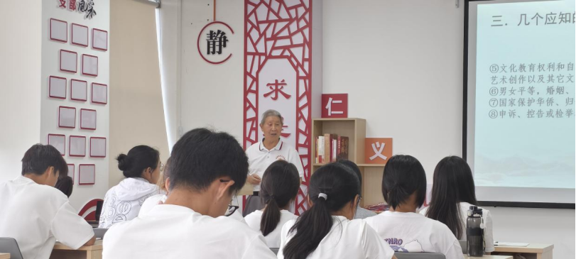 本次讲座围绕“学法的重要意义”、“坚定不移走中国特色社会主义法治道路”和“几个应知的法律知识”三个方面进行展开。 滕老师详细分析,聚焦于一些应知的法律知识,具体围绕公民的基本义务和公民的基本权利等方面展开叙述。